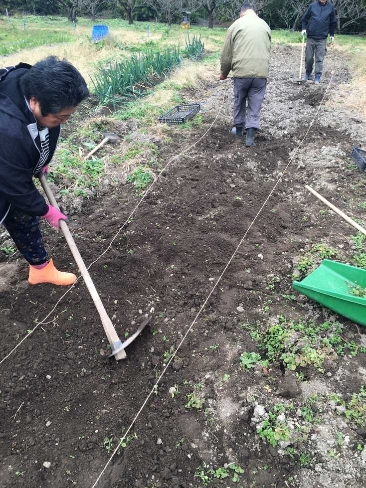 今日はキャベツ・ブロッコリー苗植え、ニンニク植付け、そして交流会を行います。