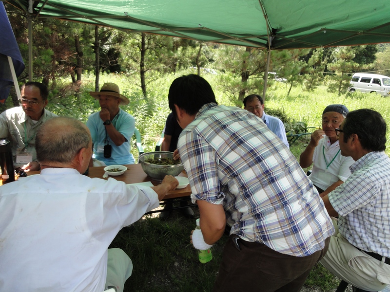 畑で採れた野菜を食べながらの交流会!皆さん楽しんでいます。