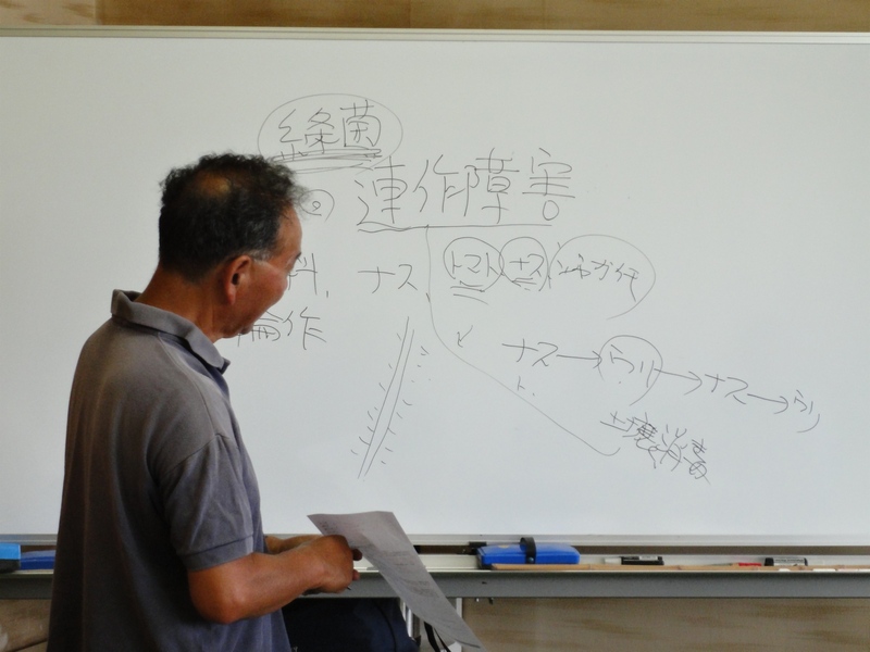 午前は、「野菜の分類と特徴」、「ニンジン、クウシンサイ、秋エダマメ種まき」の講義をしていただきました。
