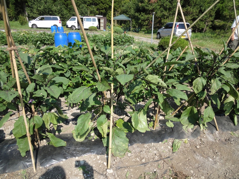 そして引き続き、ナスを竹で三本仕立てにする作業です!!