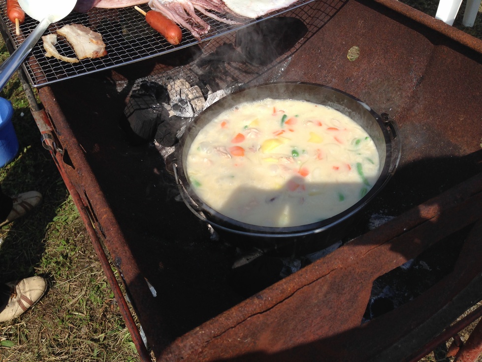 皆さんが持ち寄ってくれた食材をおいしくいただきました。