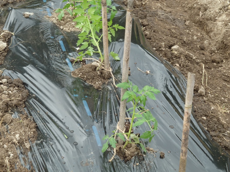 肥料等をまき耕運し、畝を作り、マルチを張ります