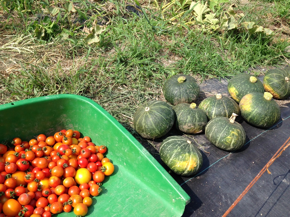 5月に植えたカボチャとミニトマトを一部収穫しました