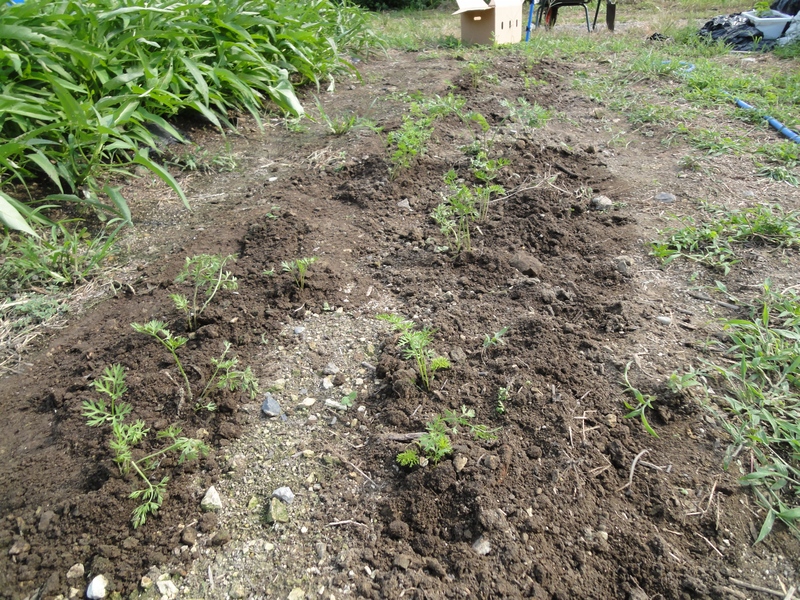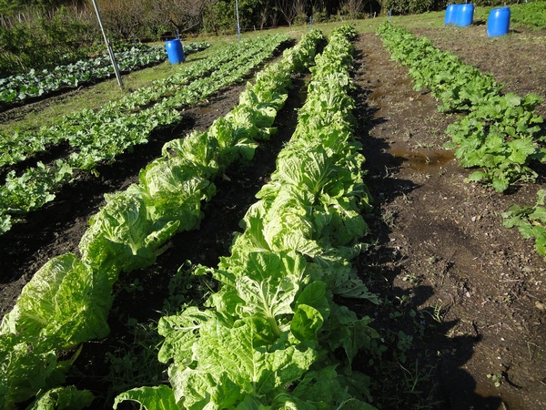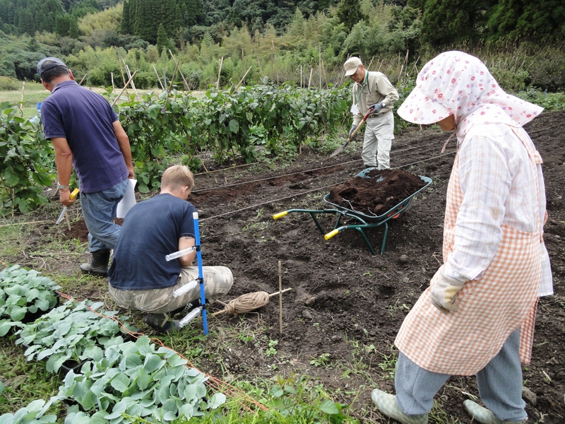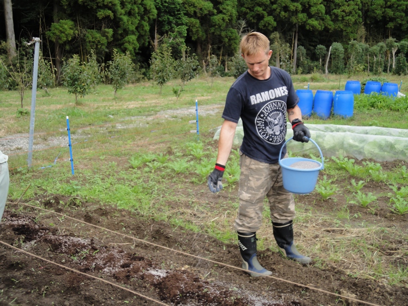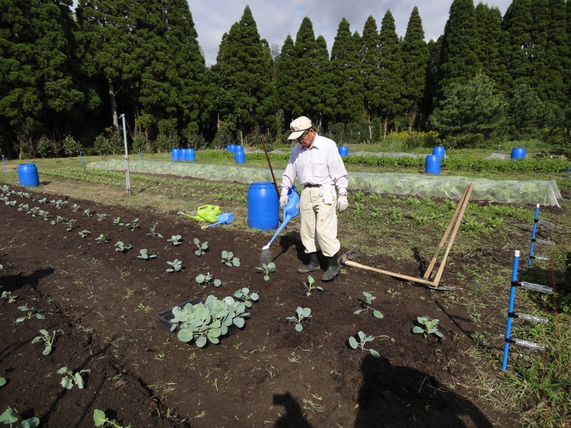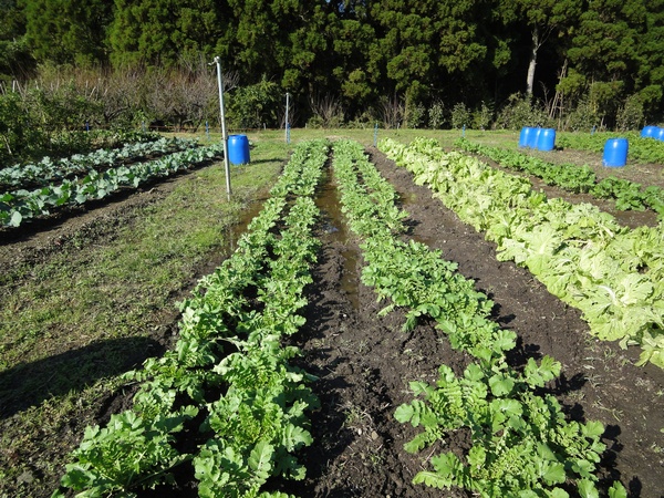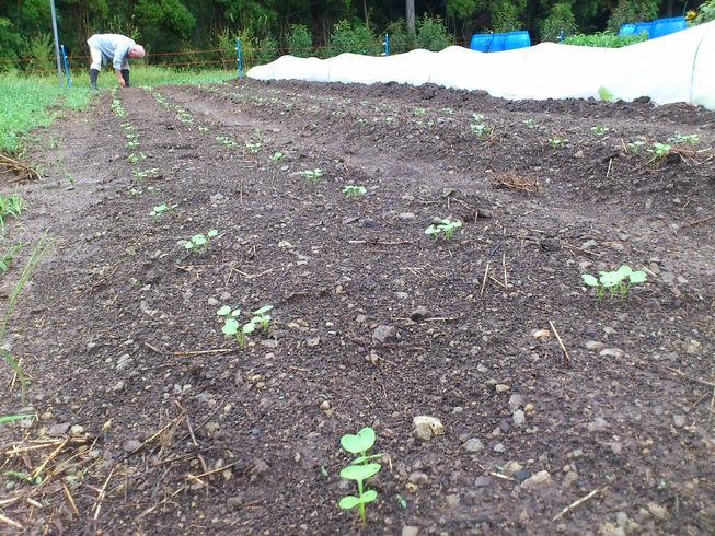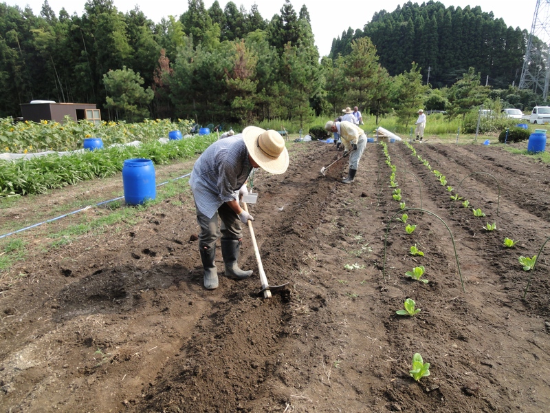 大根の種を蒔くのと同時に白菜の苗を植えるベッド作りをしています。