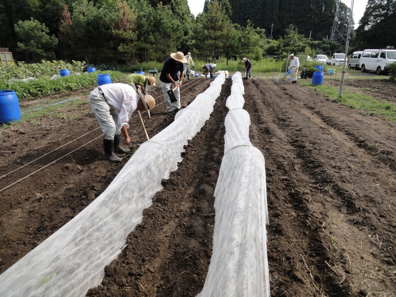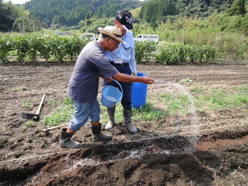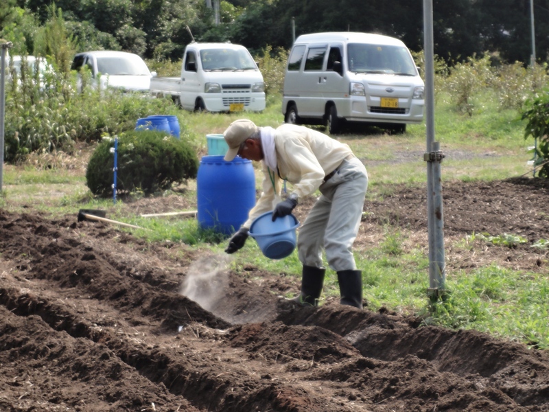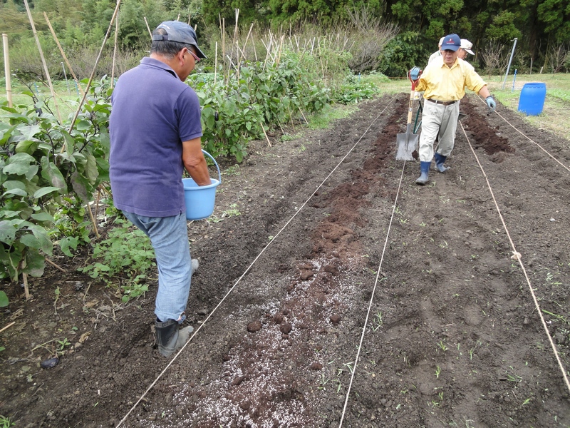 本日、一通りの作業が終わりましたが、ネギの追肥と土を被せる作業です。