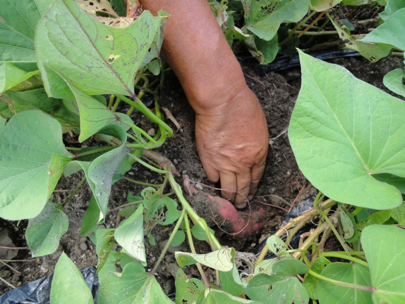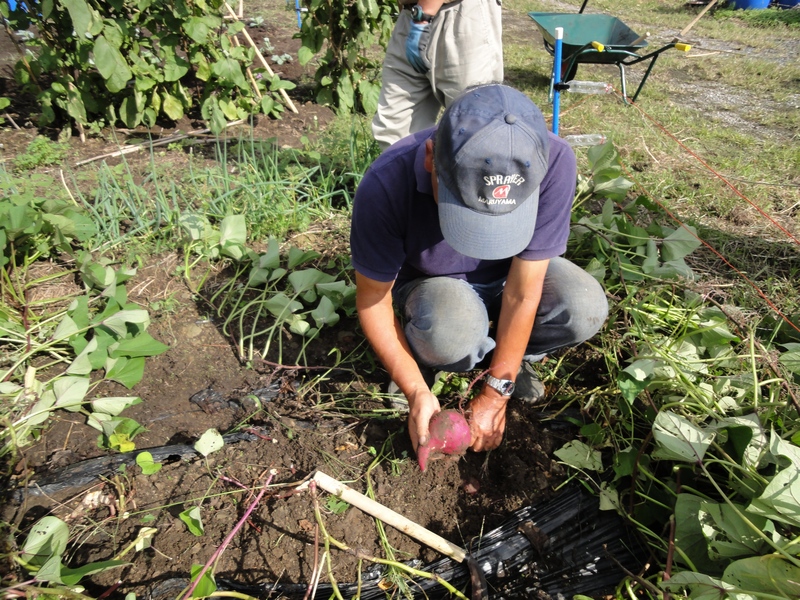 さつまいもの生育状況の確認!!結構大きく育っています。