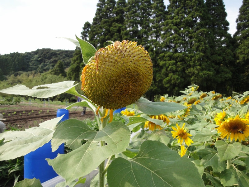 ひまわりの周りの花びらが落ちて丸坊主になっていました。
