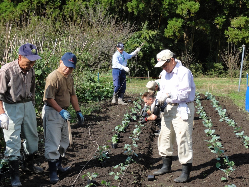 本日は、午前の部では道の駅 あずの里いちはらにおいて、「直売所見学と直売所の仕組み」についての講習、午後の部では「ハクサイ苗植え・ダイコン・ナバナ種まき」の実習をしました。