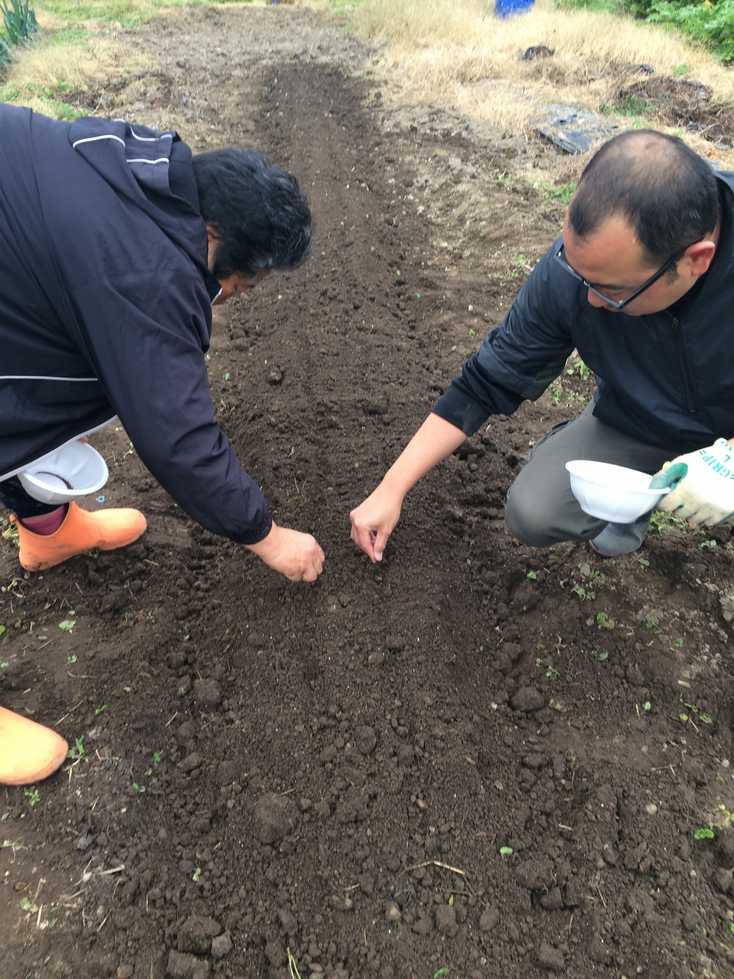 エンドウ、シュンギクの種をまきました。