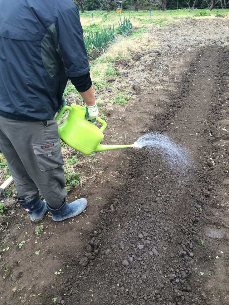 午後の実習では12月ということで植える野菜が限られる中、冬菜(とうな)の種まきを行いました。