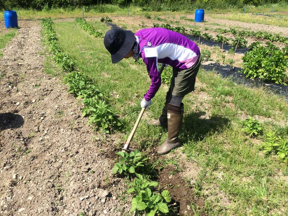 午後からは場所を畑に移しナス・サツマイモ・ネギの苗植え実習ですemoji