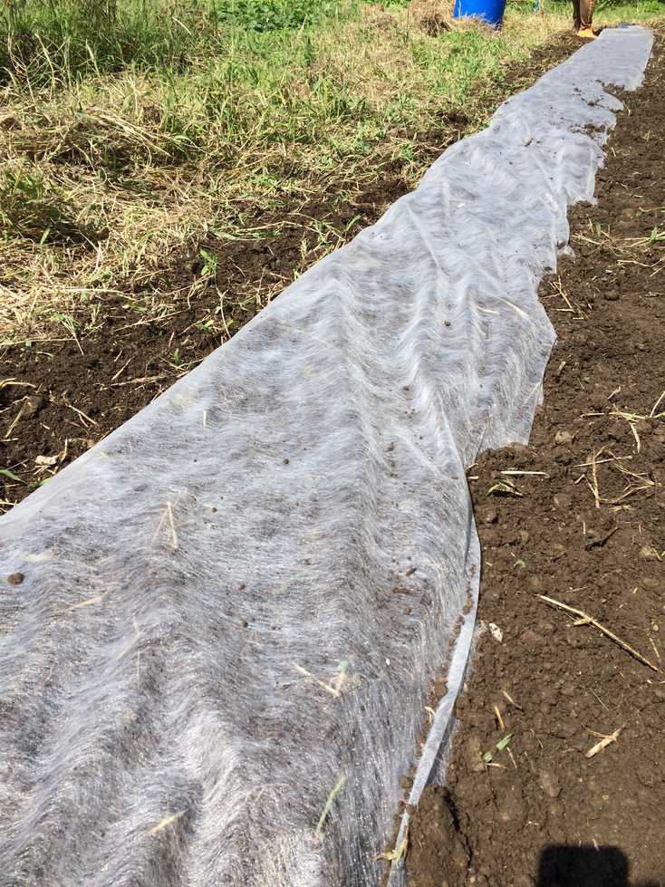 実習です。畑を耕し、畝を作り、マルチを張りましたemoji