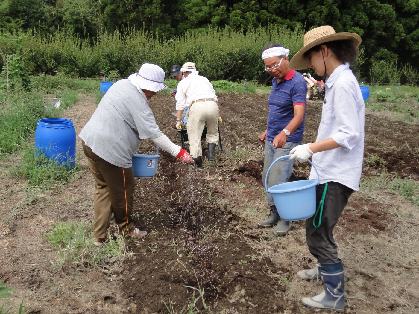 鍬を使い丁寧に混ぜ合わせていますemoji