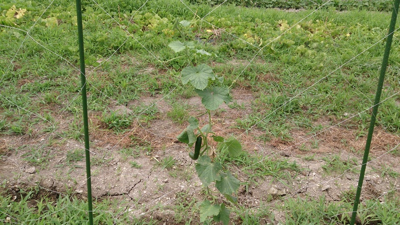 キュウリの網を張りました