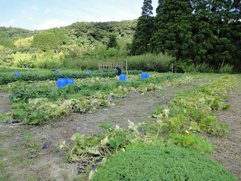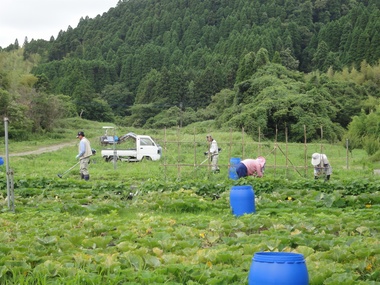 次回の講座で使用する畑の草刈り、カボチャ周辺の草刈りをおこないました。