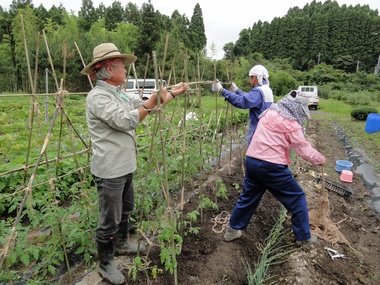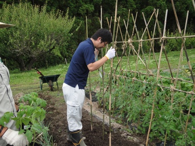 今回は先日の台風の影響で被害のあったなす、トマトの補修と、次回講座で使用する畑の草除去のため、全受講者を対象に参加が可能な方にお手伝いをお願いしました。