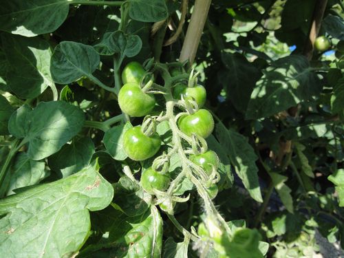 ミニトマトも5本くらい途中から折れてます。竹で作った合掌造りの支えは大丈夫でした。