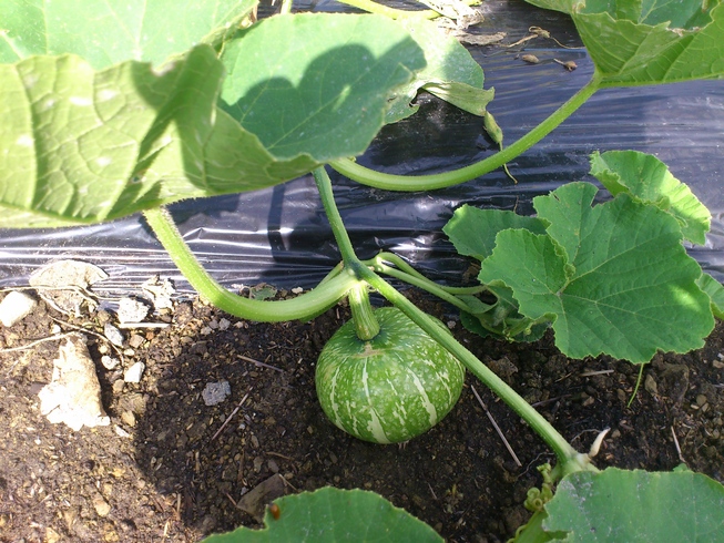 葉っぱをめくったらかぼちゃが出てきてビックリ!!