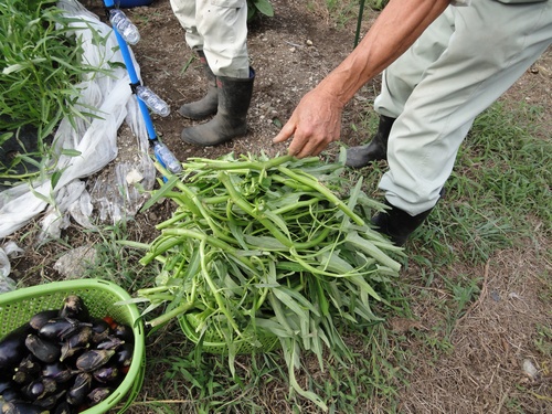 こちらも畑で取れたナスを調理しています。