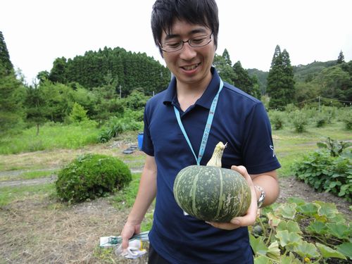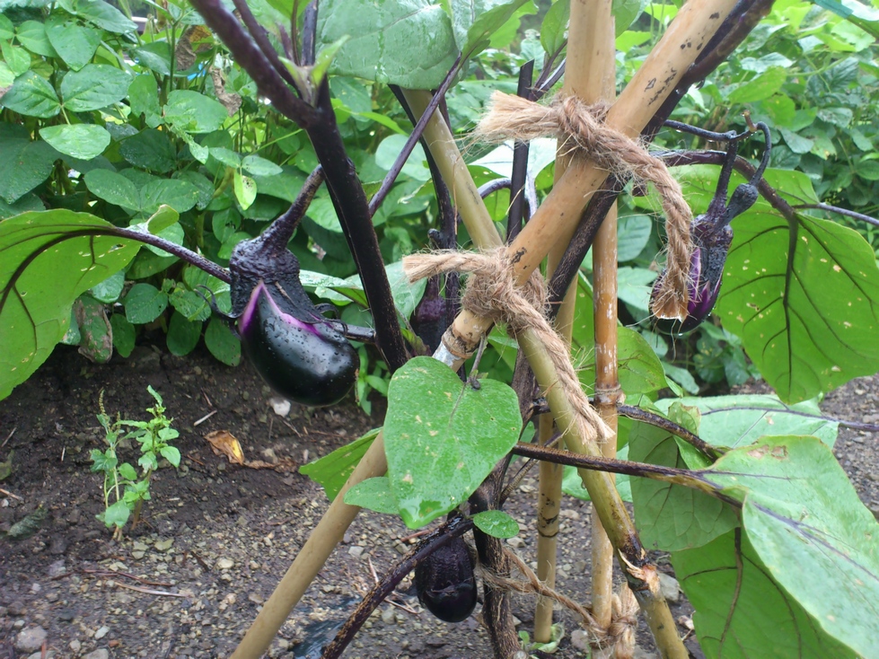 その前に、以前に植えたかぼちゃ、ミニトマト、ナスの収穫です!!