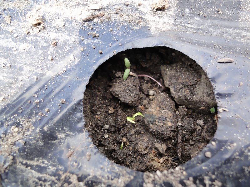 向って右側にニンジン、真ん中にはクウシンサイ、左側には秋エダマメの種を蒔きました。