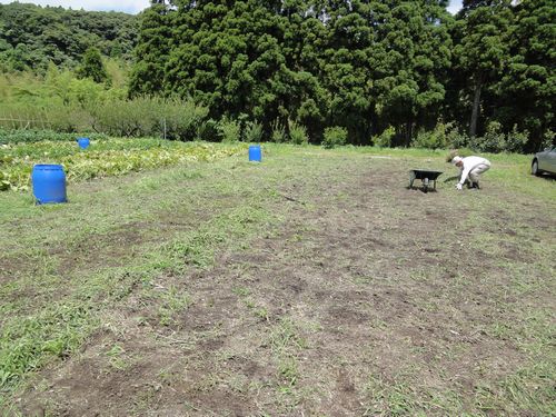 次回の講座で使用する畑の草刈り、カボチャ周辺の草刈りをおこないました。