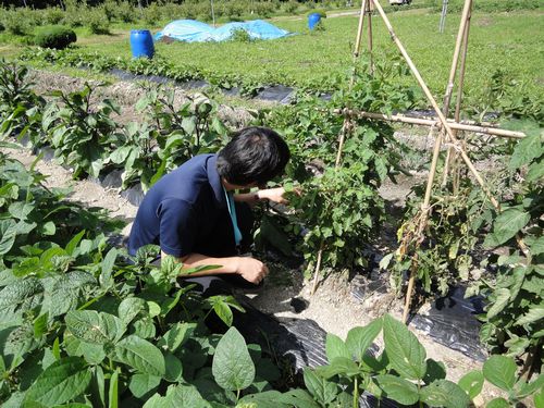 今回は先日の台風の影響で被害のあったなす、トマトの補修と、次回講座で使用する畑の草除去のため、全受講者を対象に参加が可能な方にお手伝いをお願いしました。