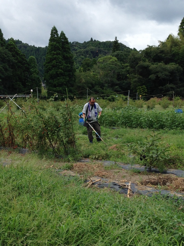 今日は管理当番の受講生の方が刈払機を使って草刈りを行いました。