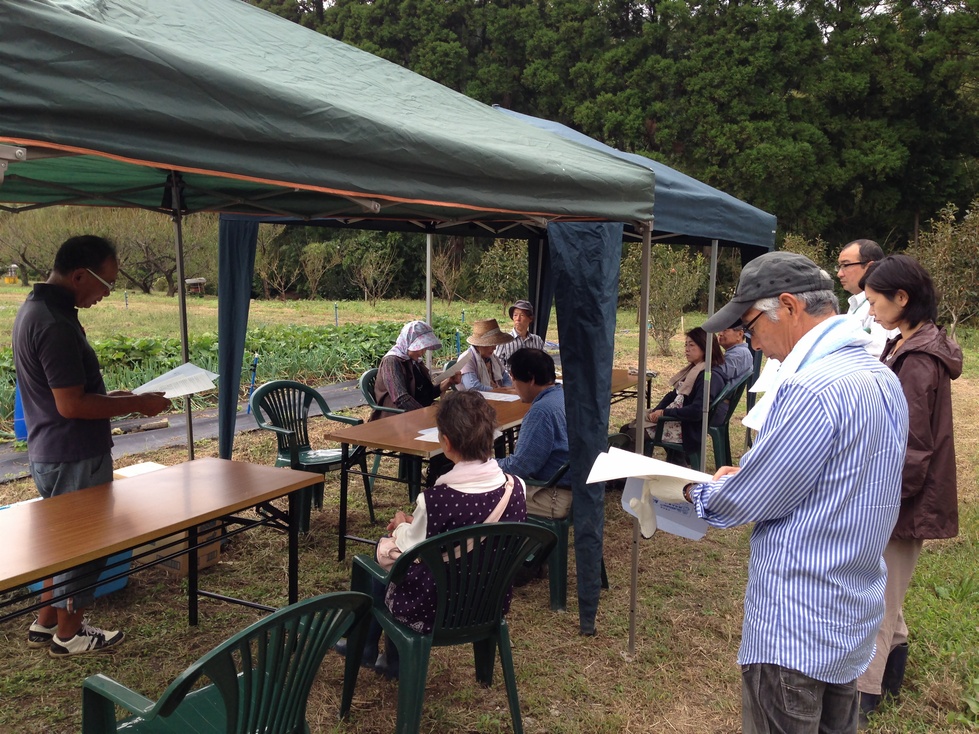 交流会ということもあり、農場に直接集合し、テントの下で講義を行いました。