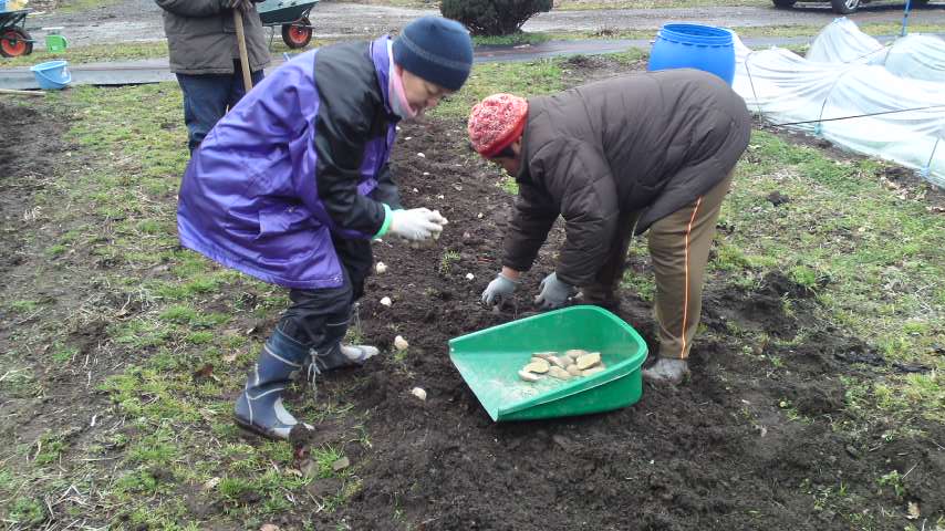 皆で種芋を植えますemoji