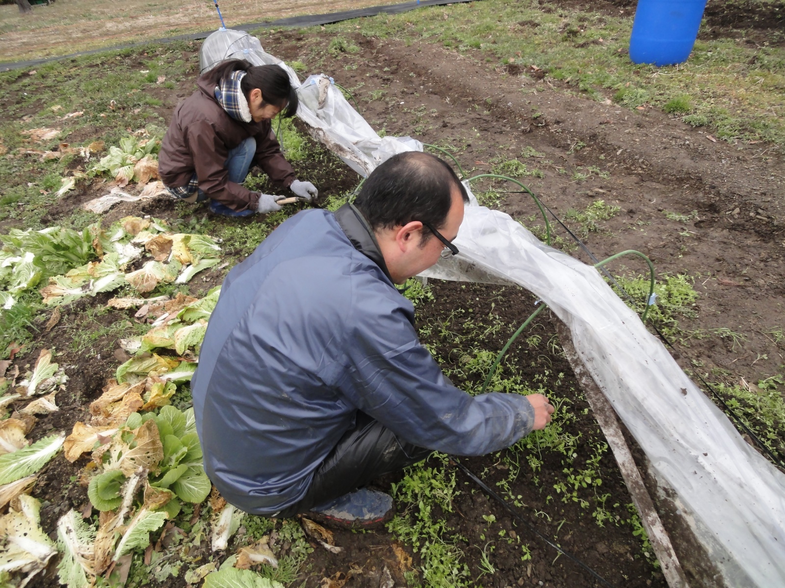 こちらは、以前に植えた、九条ネギやルッコラなどの草取りをしていますemoji