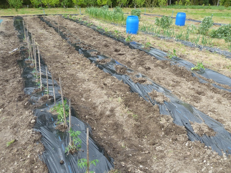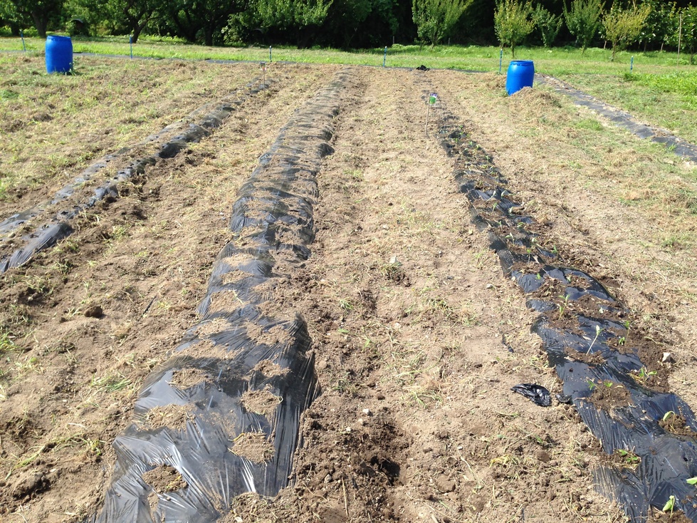 肥料等をまき耕運し、畝を作り、マルチを張りますemoji