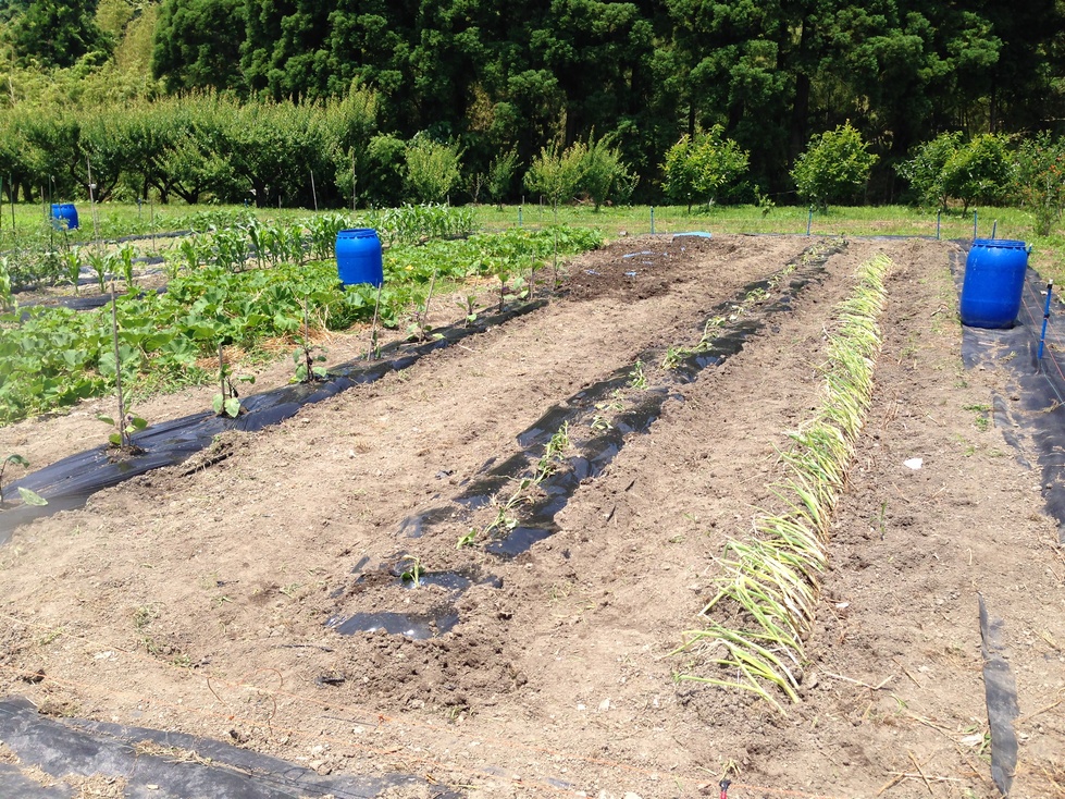 ねぎは施肥をし乾燥防止に藁をしきました。