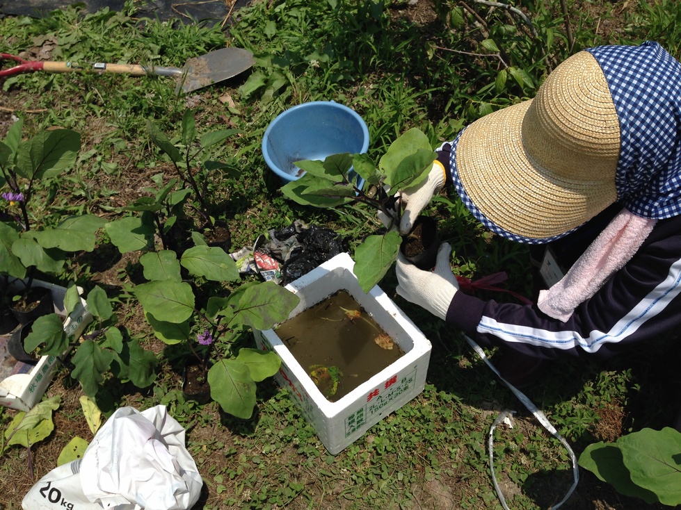 なすは植える前に根にたっぷり水を含ませます。