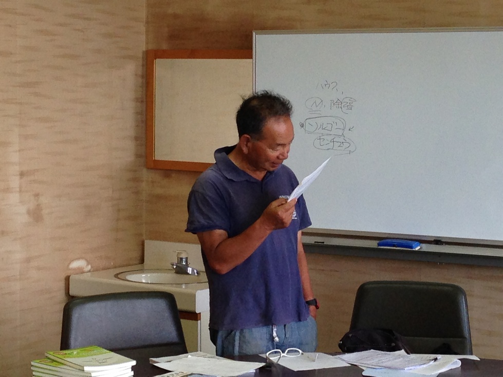 午前中は農業経営の実態と課題、本日実習予定のナス、サツマイモ、ネギの苗植えやモロヘイヤ、ゴボウの種まきについての講義です!