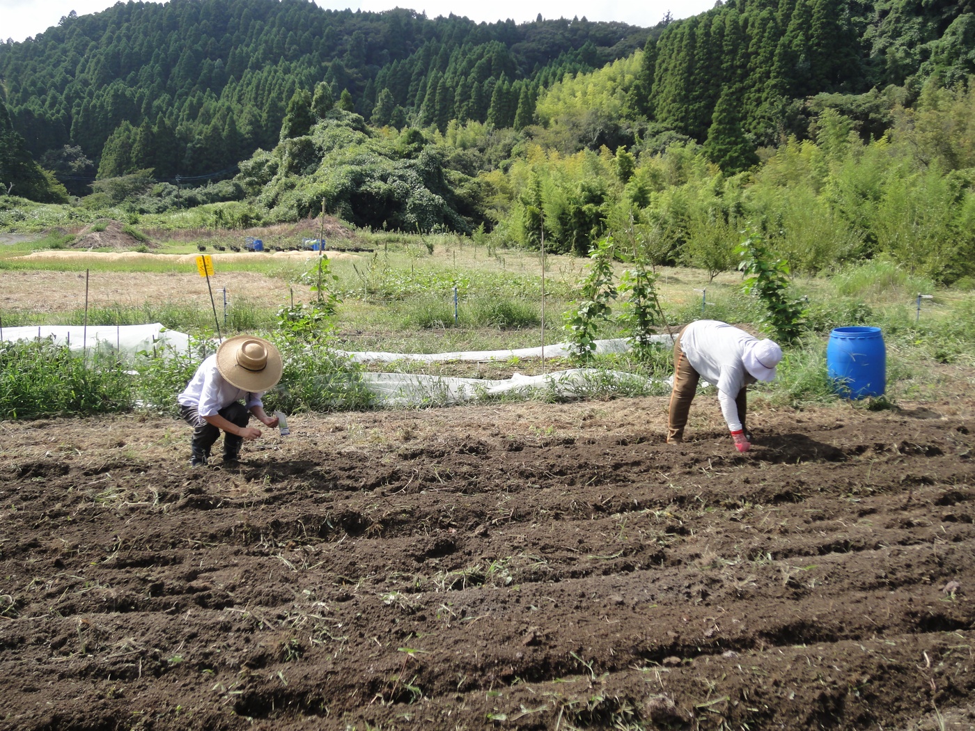 ルッコラ、九条太ねぎの種を蒔きます