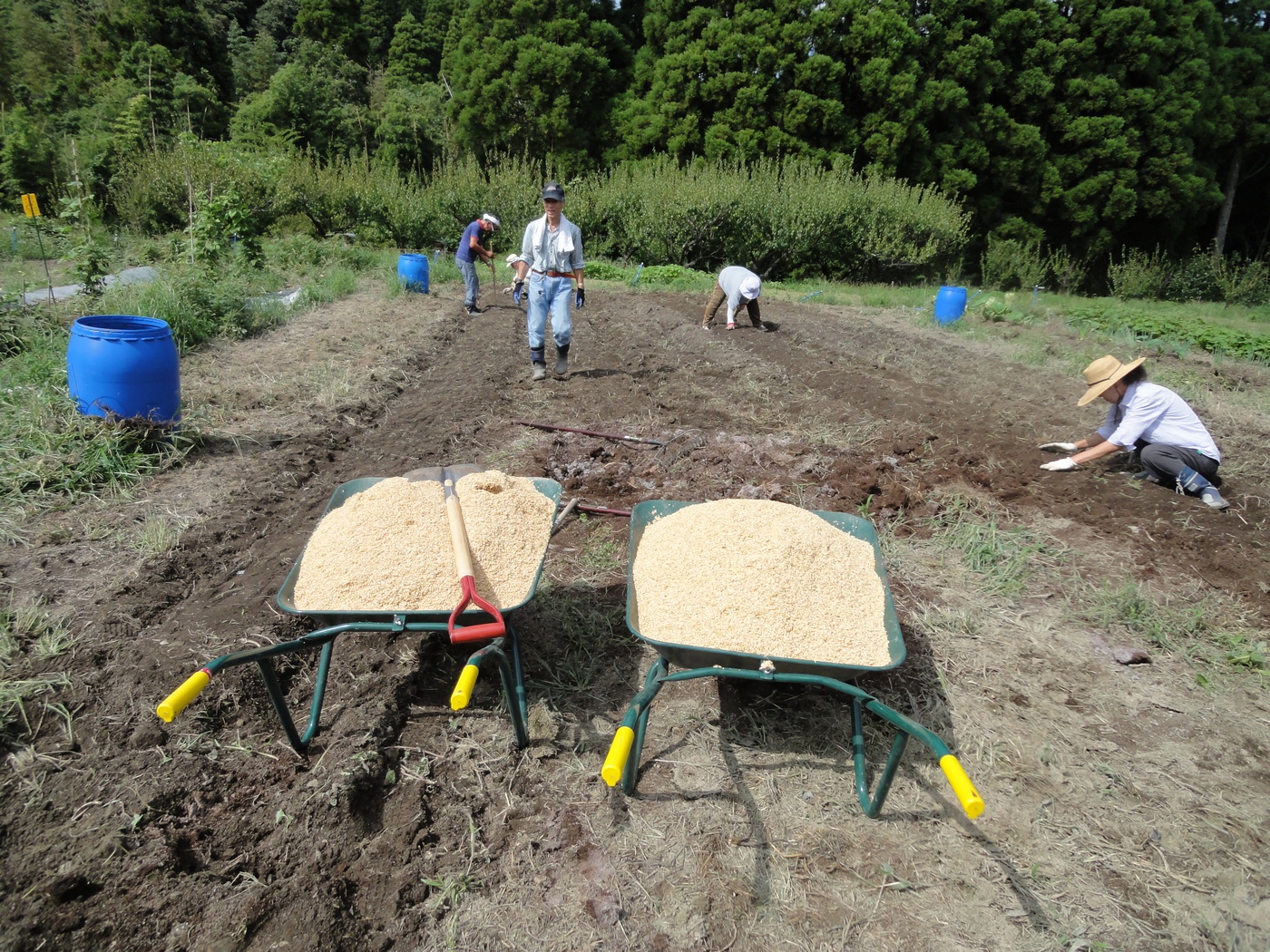 午後からは、ルッコラ、九条太ねぎ、ガーデンレタスミックス、ムスクラン・サラダセットの種を蒔きました