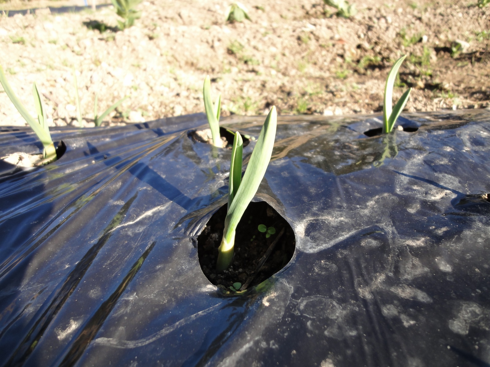にんにくは、早くも芽が出てきました