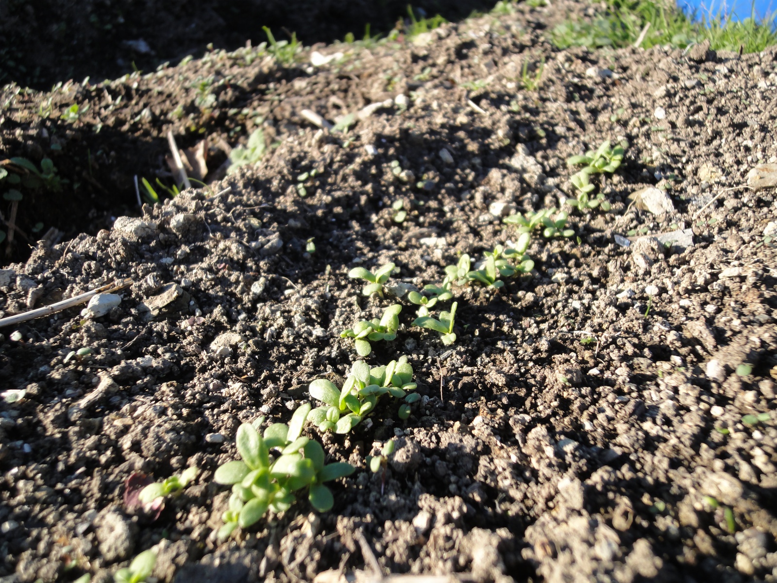 隣の列は、ガーデンレタスミックス、ムスクラン・サラダセットの種を蒔きました